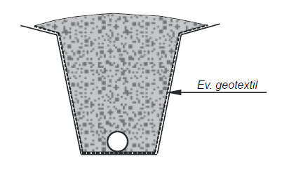 - Vid behov kan en geotextil läggas mellan den fasta marken och dränagegruset, och eventuellt även i ovankant av grusskiktet.